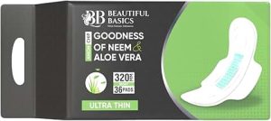 Beautiful Basics Anion Sanitary Pads for Women With Goodness of Neem & Aloe Vera | Ultra Thin 320mm 36 Pads | Leakage Protection | PH Balance | With Antibacterial Anion Chip | 5X More Absorbance