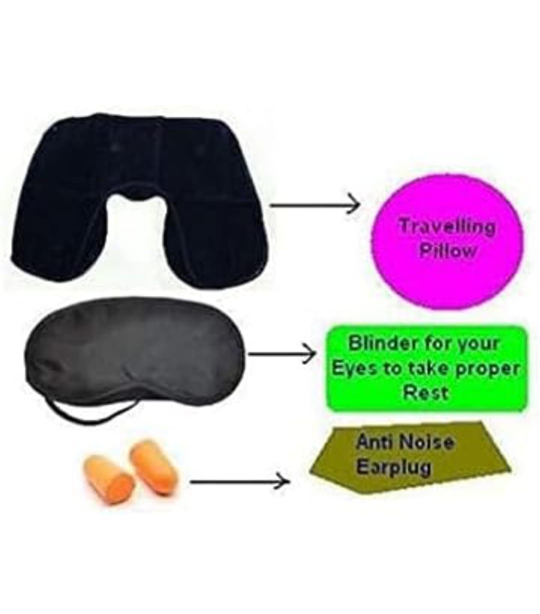 Travel Kit with Neck Pillow, Eye Mask, and Ear Plugs